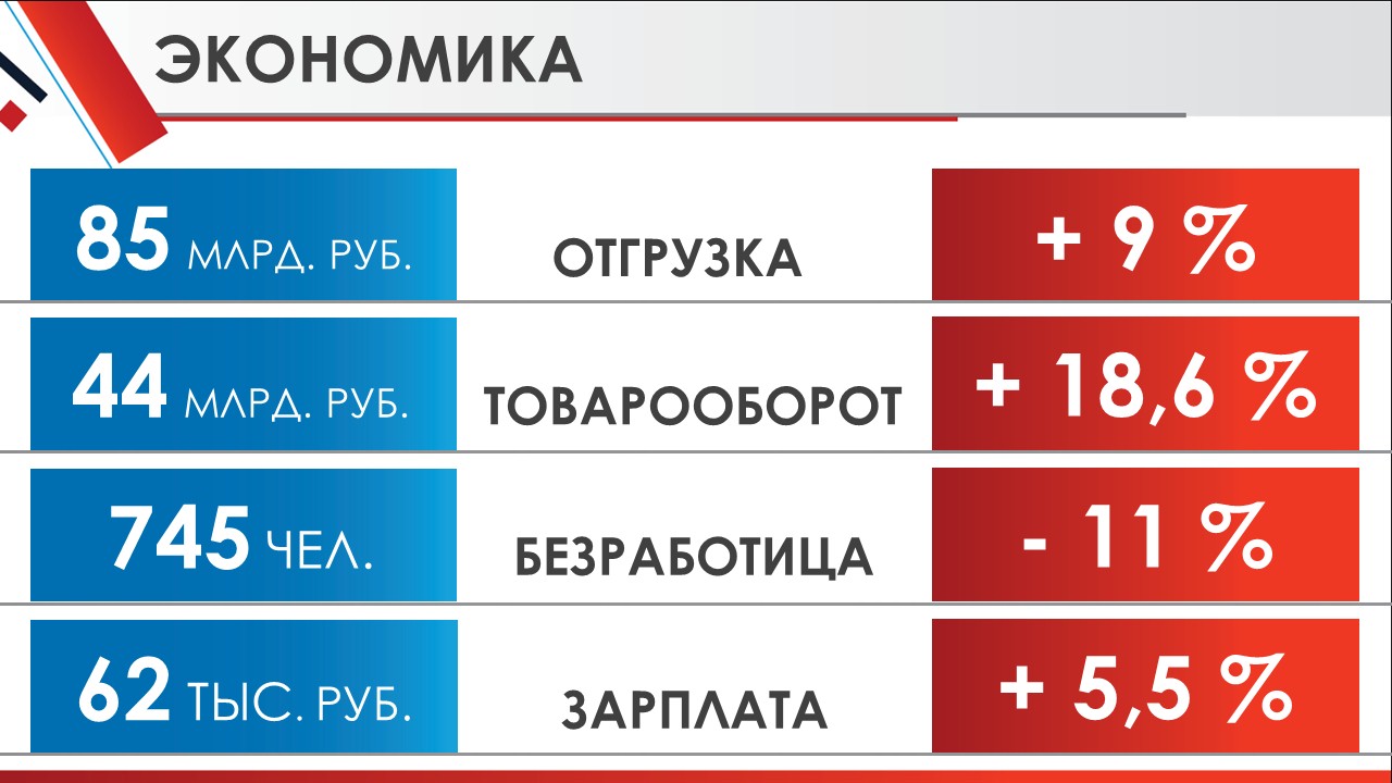 Объем отгруженной продукции и выполненных работ составил 85 млрд. руб., это плюс 9 % к 2017 году.