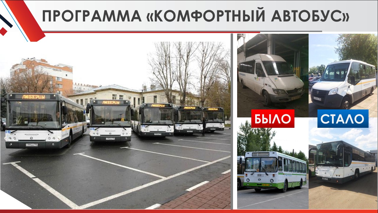 В рамках программы «Комфортный автобус» весь подвижной состав на муниципальных маршрутах приведен к четкому стандарту: возраст автобусов малого класса не превышает 5 лет, большого класса – 7 лет. Во всех автобусах можно безналично оплатить проезд картой «Стрелкой».