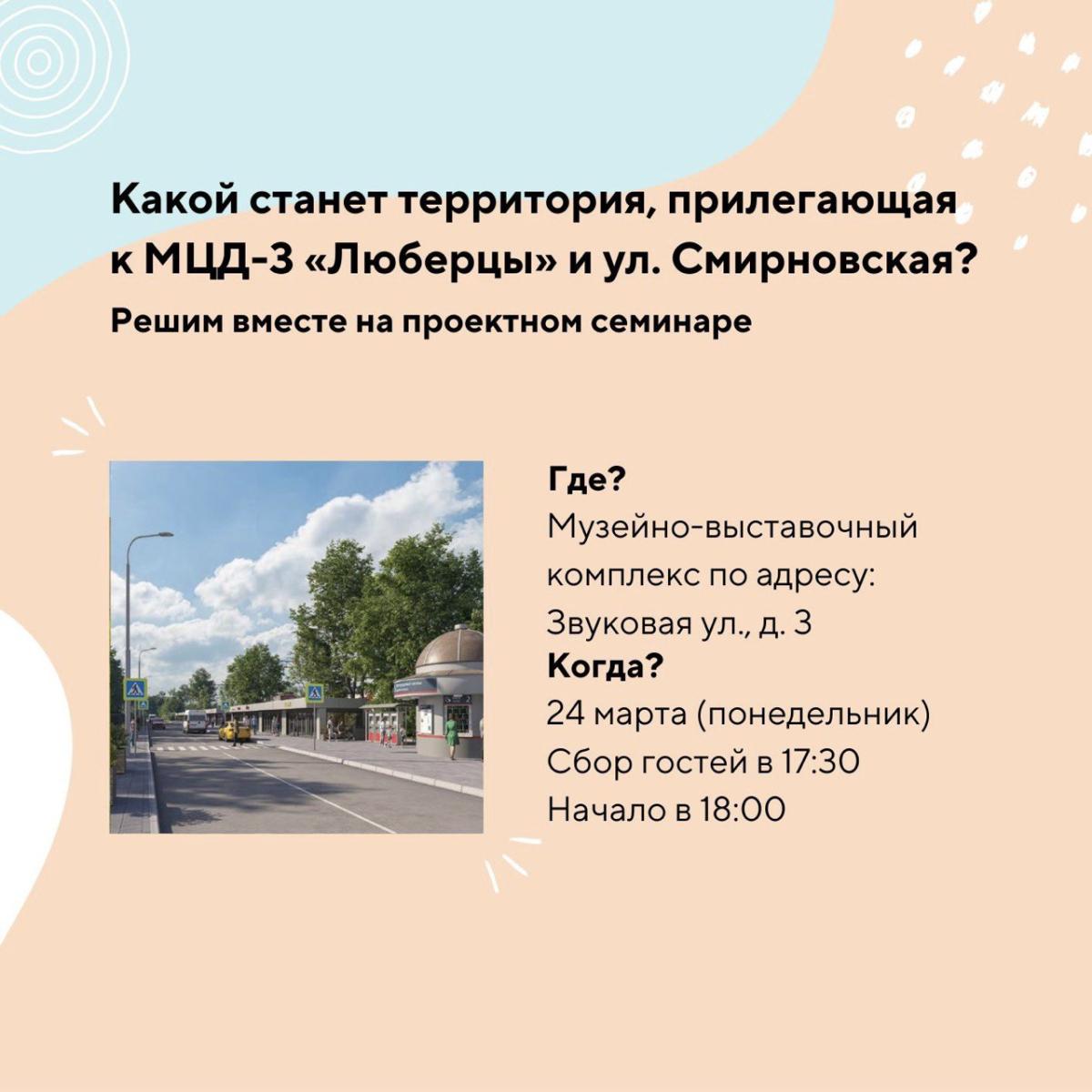 Напомним, что в этом году Люберцы участвует в Всероссийском конкурсе лучших проектов благоустройства. В рамках работы планируется активное взаимодействие с жителями по сбору предложений о будущем проекте. Приглашаем вас на проектный семинар, где мы встретимся и вживую обсудим все проблемы территории и идеи по её развитию.