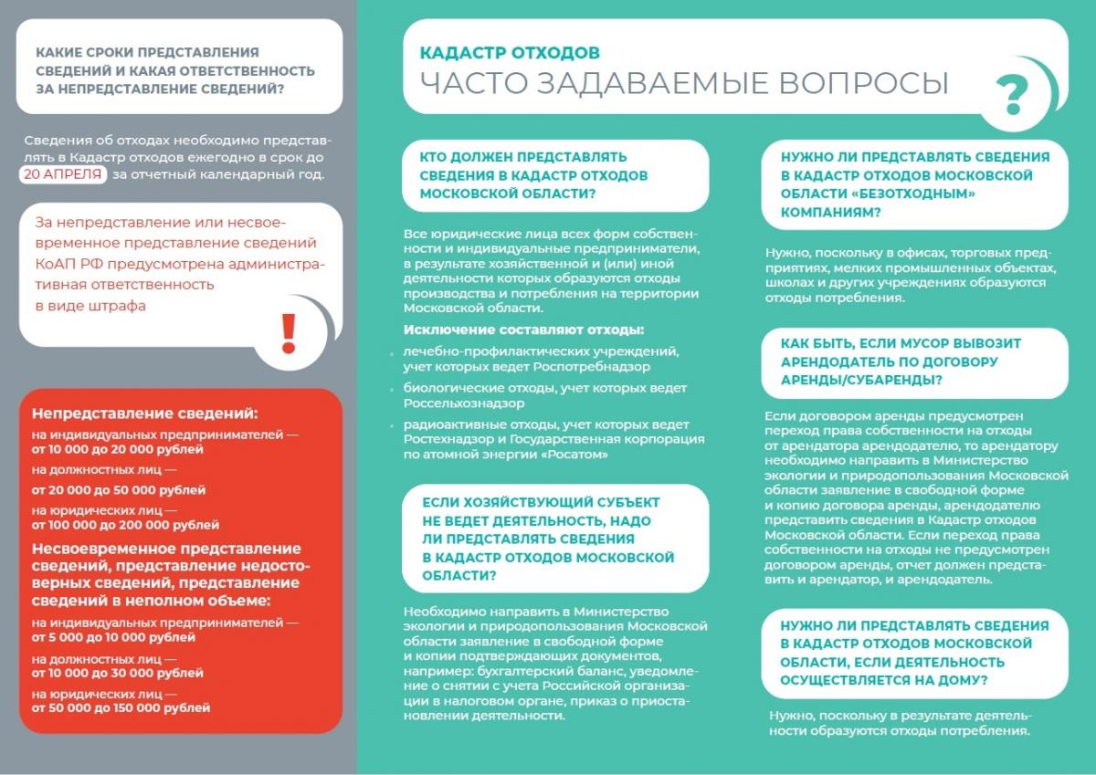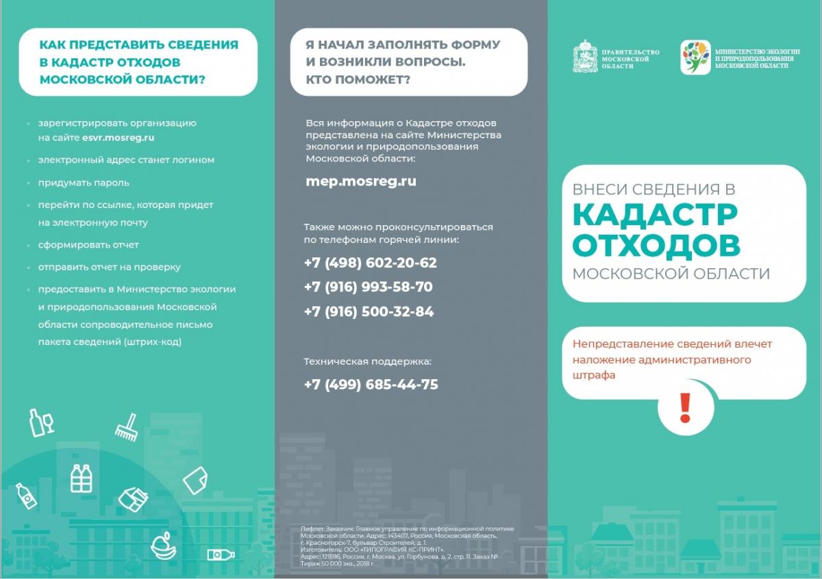 Информация о необходимости внесения сведений в кадастр отходов Московской области